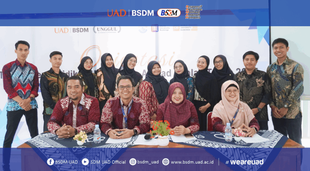 Universitas Ahmad Dahlan (UAD) melalui Biro Sumber Daya Manusia (BSDM) menyelenggarakan kegiatan Orientasi Tenaga Kependidikan Tahun 2025 pada Kamis, 9 Oktober 2025. Acara ini berlangsung di Ruang Kaca Timur, Kampus IV UAD, dan diikuti oleh 11 orang tenaga kependidikan baru. Hadir dalam kegiatan tersebut Wakil Rektor Bidang Sumber Daya Manusia, Dr. Norma Sari, S.H., M.Hum.; Kepala Biro Sumber Daya Manusia, Dr. Hendro Widodo, M.Pd.; serta Kepala Bidang Pendidikan dan Pelatihan, Nur Arina Hidayati, M.Sc.